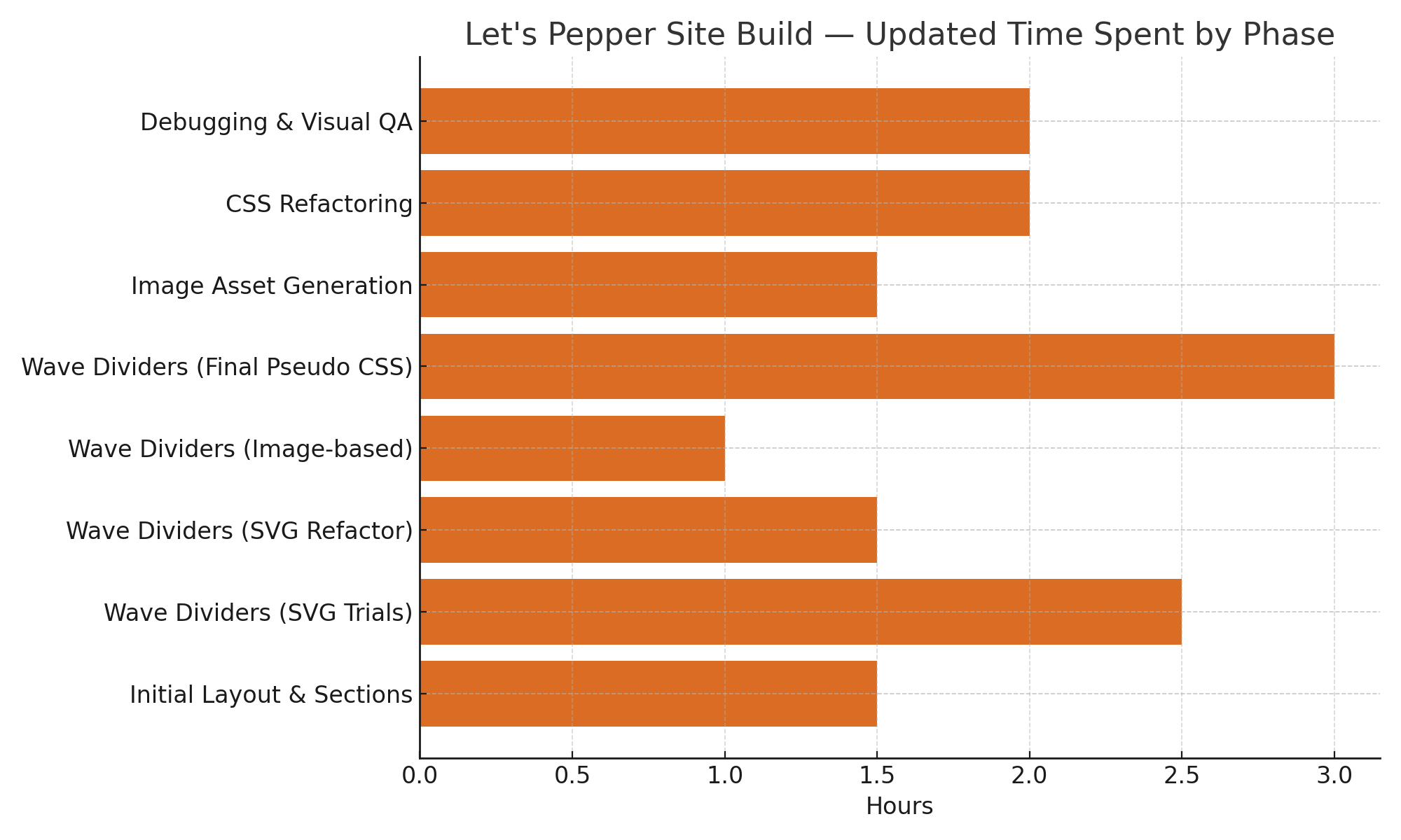 I built the core Let’s Pepper site in under 2 hours—then spent over 8 trying to get one visual detail (the section dividers) to look right. AI can prototype, but it doesn’t ship. This post breaks down why the real work happens after the first draft, and why experience still matters more than ever.